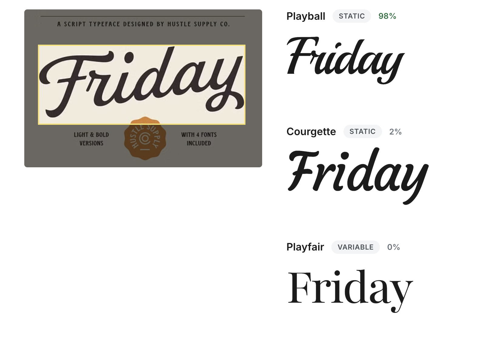 Analyze an image URL and return ranked open source font matches for the largest readable word.